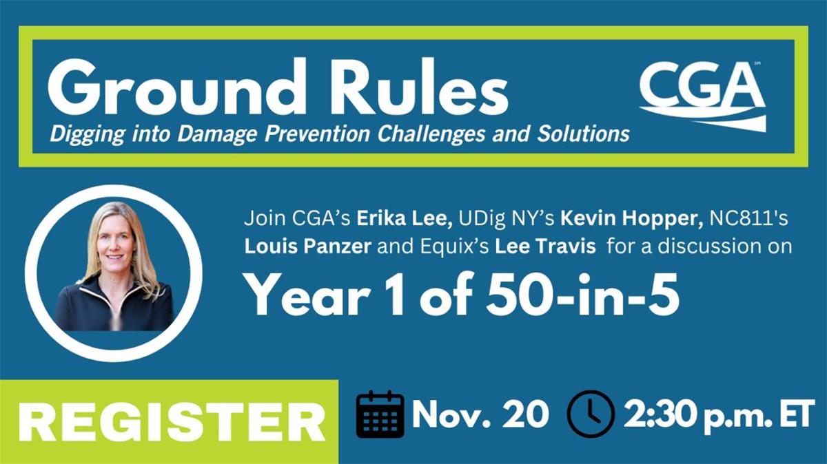 Join CGA's Erika Lee and an expert panel featuring UDig NY's Kevin Hopper, North Carolina 811's Louis Panzer and Equix's Lee Travis for an interactive LinkedIn Live on Nov. 20 at 2:30 p.m. as we unveil: